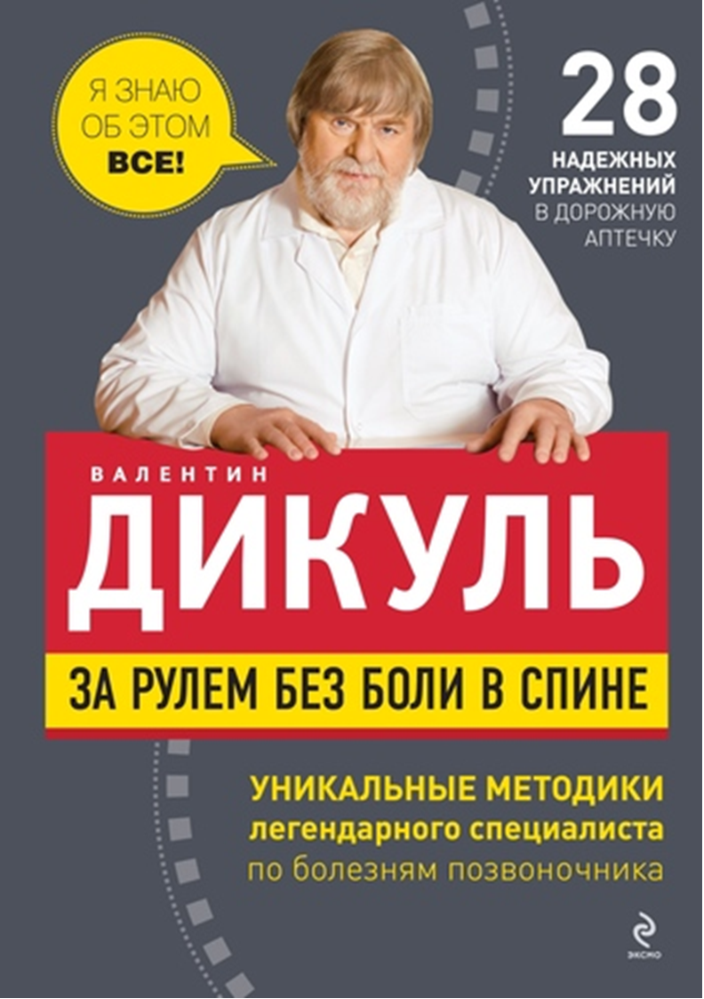 Описание:Куда бы вы ни ехали, уже скоро после начала поездки начинает ныть спина. Если не предпринять меры, боль в шее или пояснице может стать хронической.Самый известный специалист по болезням позвоночника академик Валентин Иванович Дикуль разработал особую систему упражнений против боли в спине. Она предназначена для тех, кто проводит много времени по пути на работу или любит автопутешествия. Выполнять эти упражнения можно, даже не выходя из машины.Последуйте советам легендарного специалиста, и тогда боль в спине не нарушит ваших планов! Удачи на дороге!Внимание!Перед тем как делать упражнения, убедитесь в отсутствии противопоказаний. Будьте внимательны при выполнении упражнений с приспособлениями!Академик Дикуль автор уникальных восстановительных методик, основатель сети реабилитационных клиник для людей с болезнями позвоночника. Автор выражает благодарность врачу ЛФК Наталье Смирновой, сотруднику центра Дикуля, за демонстрацию упражнений.Отдельная благодарность ООО «Аскона» за предоставленное фото автора.